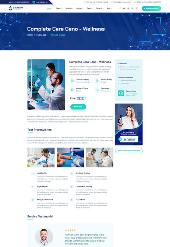 As packages ar are the most important features in a laboratory website, we have presented them in a versatile manner. As client you will get agreat exposure in the details page also.