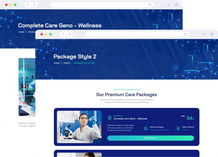 As packages ar are the most important features in a laboratory website, we have presented them in a versatile manner. As client you will get agreat exposure in the details page also.